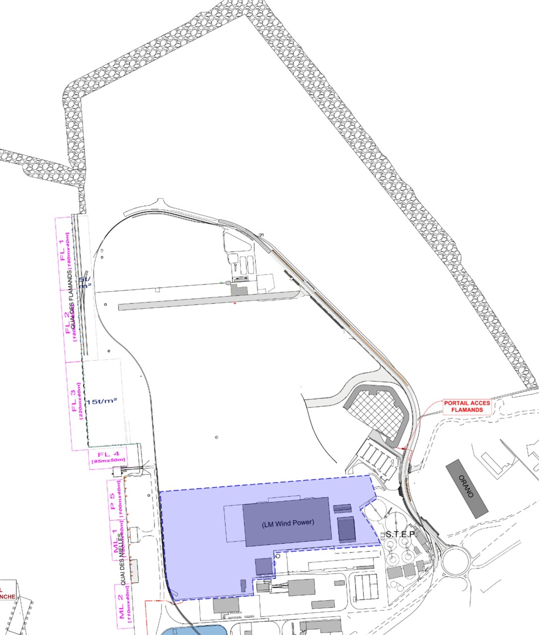 - Flamands yard and quay (680 m)